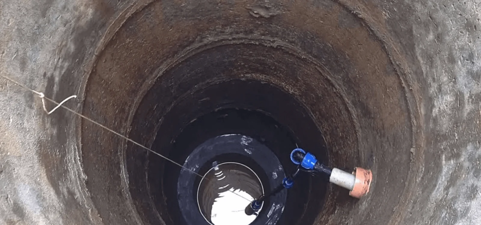 Сначала нужно осушить колодец, например, с помощью насоса. Это поможет увидеть, есть ли протечки в колодезных кольцах. Затем очистить бетон скребком, металлической щеткой или сильной струей воды.
