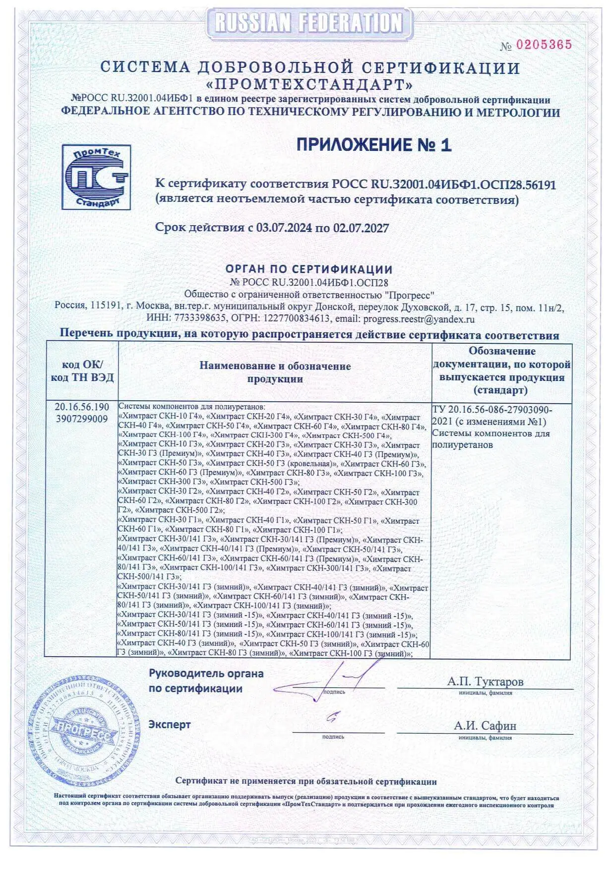 Сертификаты для заливочных ППУ